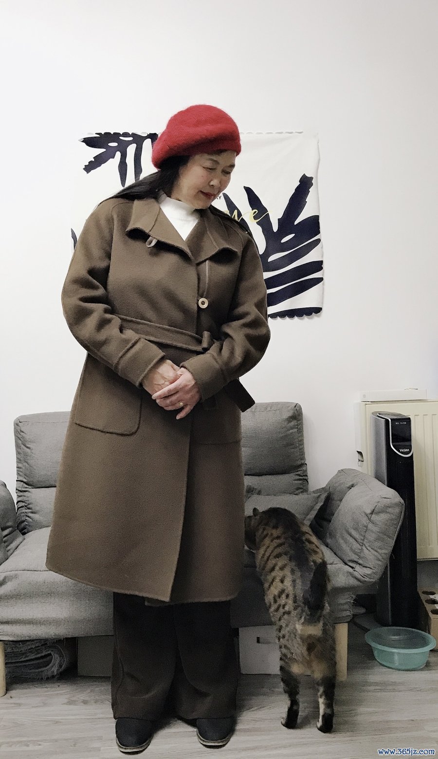 我妈试穿了。毛衣稍微有点大,袖子长了一截,她说:“刚好刚好,宽松的好穿。”然后把袖口挽了一圈。