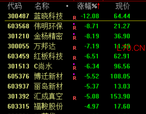 下跌方面,锂电产业链下挫,蓝晓科技跌超10%。