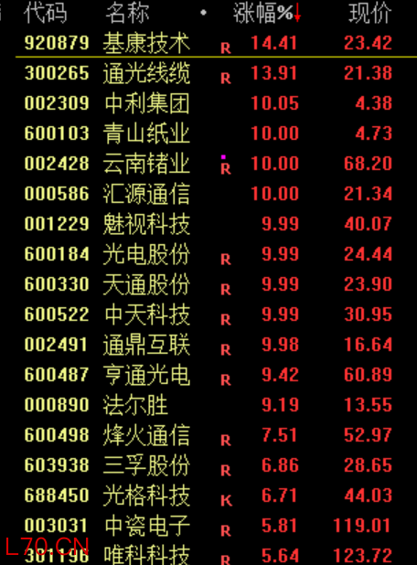 光纤概念股反复活跃,汇源通信、通鼎互联、光电股份等多股涨停。