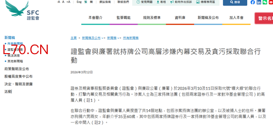 香港证监会与廉政公署,于2026年3月10日及11日采取代号“导火线”的联合行动,打击内幕交易及相关贪污行为。