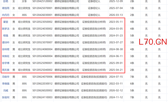 就在刚刚,金石杂谈查询发现,德邦证券分析师人数只剩下8人了。就在近期,德邦通信首席分析师李宏涛、德邦海外首席薛威以及德邦能源有色分析师高嘉麒等相继离职,且今年入职分析师挂零。